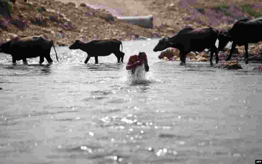 An Indian bathes in the River Tawi in Jammu, India, March 22, 2012. (AP)