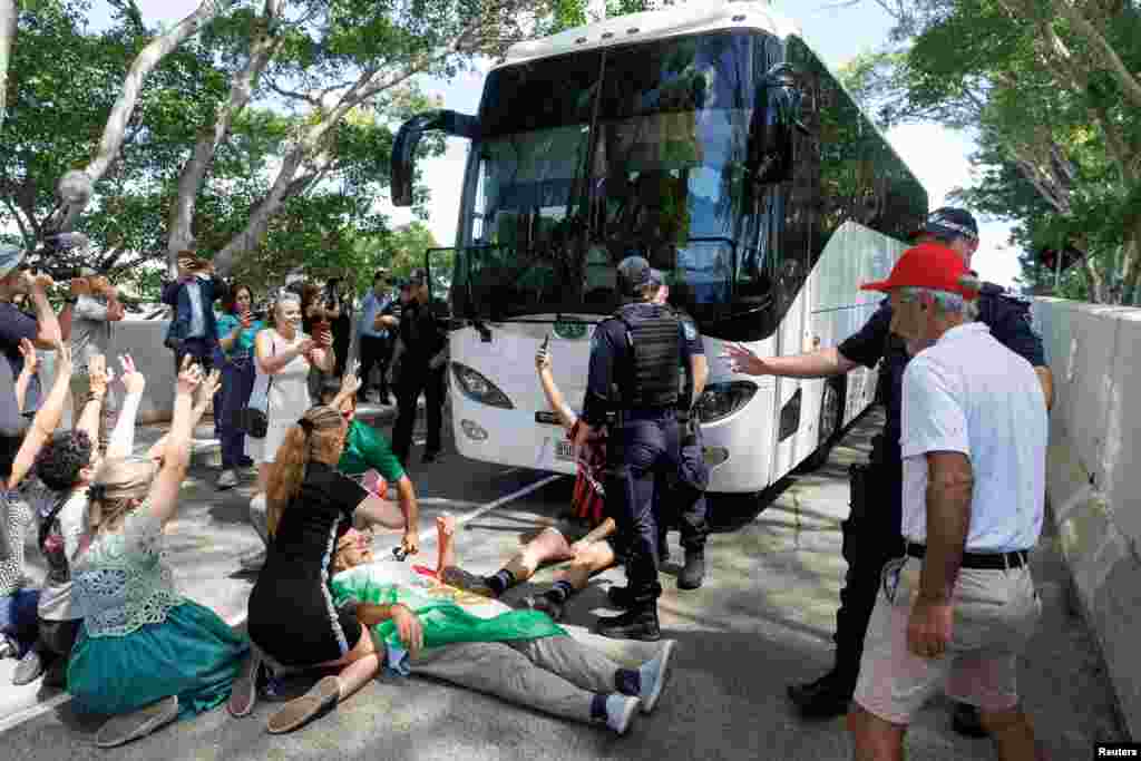 معترضان مسیر اتوبوس حامل تیم فوتبال زنان ایران را مسدود کردند