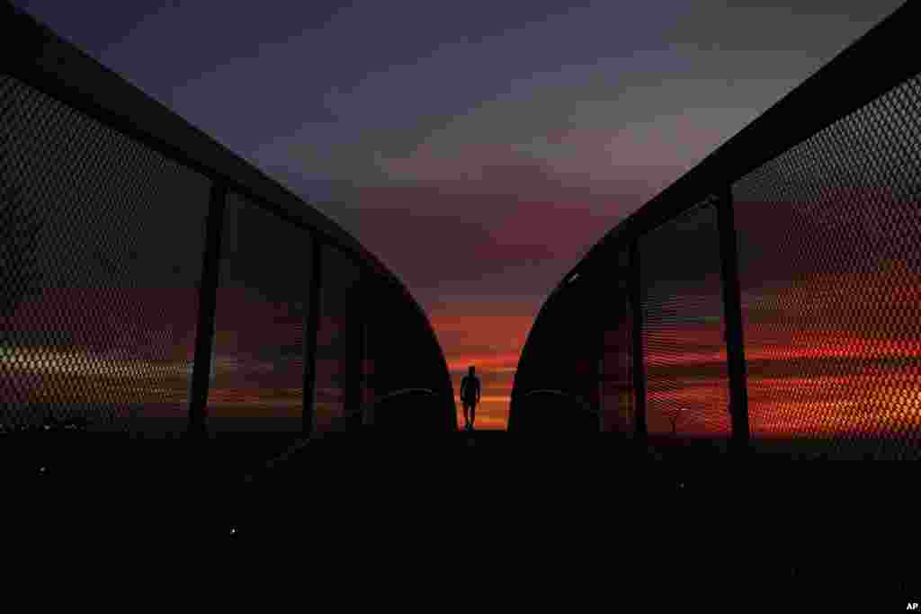 دویدن به هنگام غروب آفتاب در سانتا مونیکا کالیفرنیا