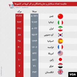 ✅ اینفوگرافیک | مقایسه تعداد مبتلایان و جانباختگان بر اثر کرونا در کشورها.