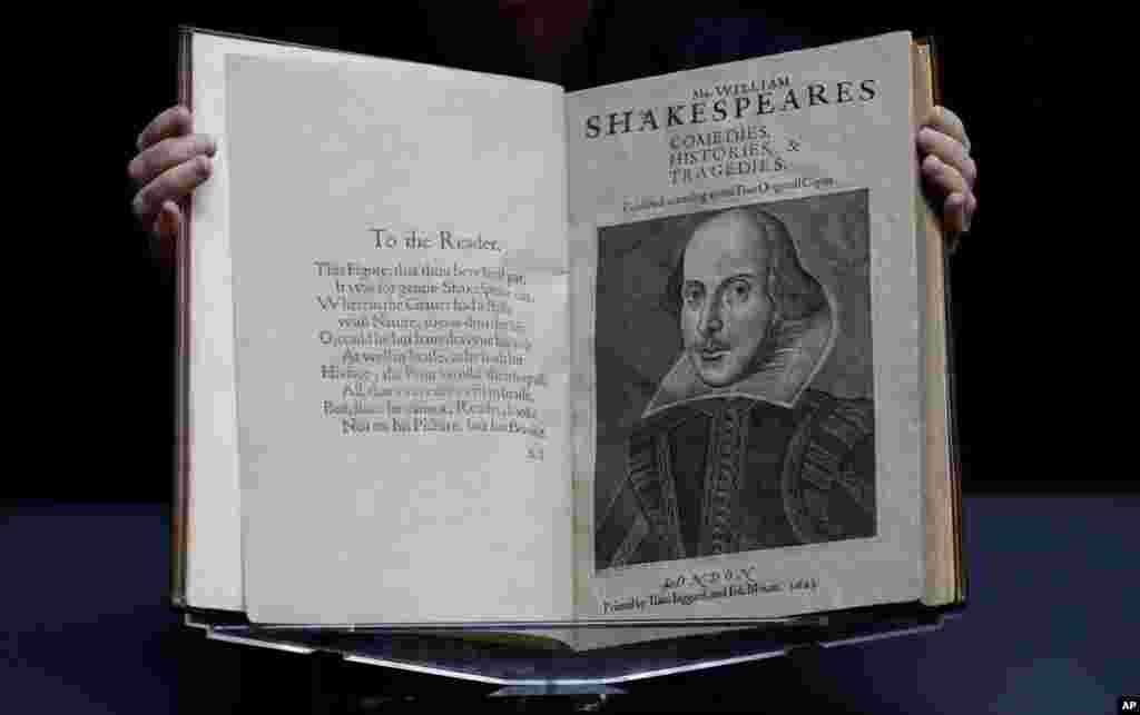 نخستین کتاب مجموعه کارهای ویلیام شکسپیر، شاعر و نمایشنامه نویس بریتانیایی، که شامل ۳۶ نمایشنامه است و در سال ۱۶۲۳ میلادی منتشر شده است، در سالن حراجخانه کریستی به نمایش در آمد.